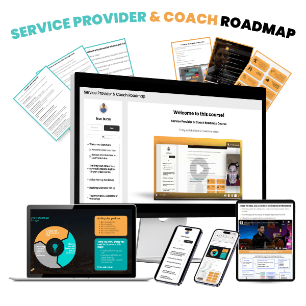 • Coach & Service Provider Roadmap Course: Starting a business online can be overwhelming with options. My #1 recommendation for most people is to start by being a service provider. Which is exactly what I did. And this course is the A to Z of starting from scratch from getting your first customer, to getting your second customer, to getting those initial testimonials, to closing your first deal, and how to slowly but surely build up a client base. The exact same roadmap applies to a coaching business.